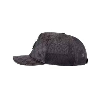 Gucci GG Supreme Mesh Baseball Cap – A premium charcoal monogram cap featuring breathable mesh panels and the signature interlocking G logo.