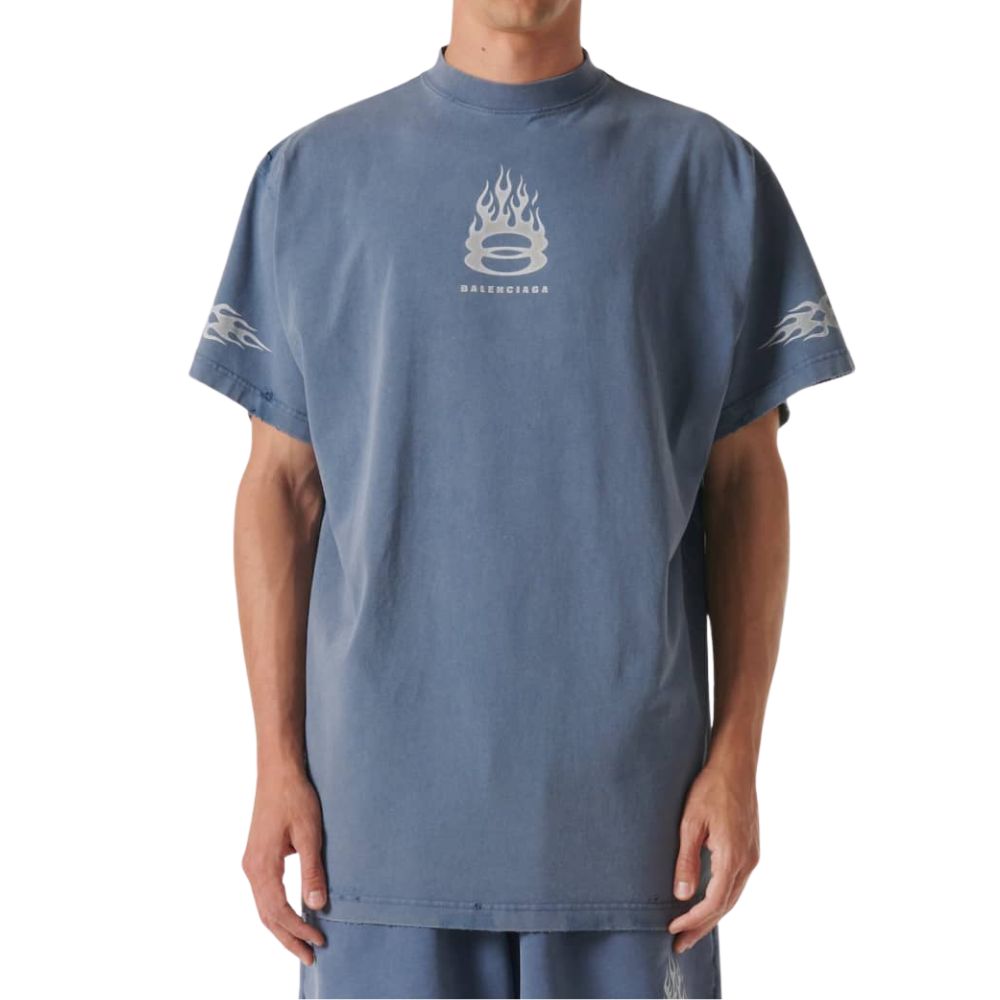 Balenciaga Burning Unity Cotton Jersey T-Shirt – Large luxury tee crafted from soft cotton with a bold Burning Unity graphic, merging street style with high-fashion attitude.