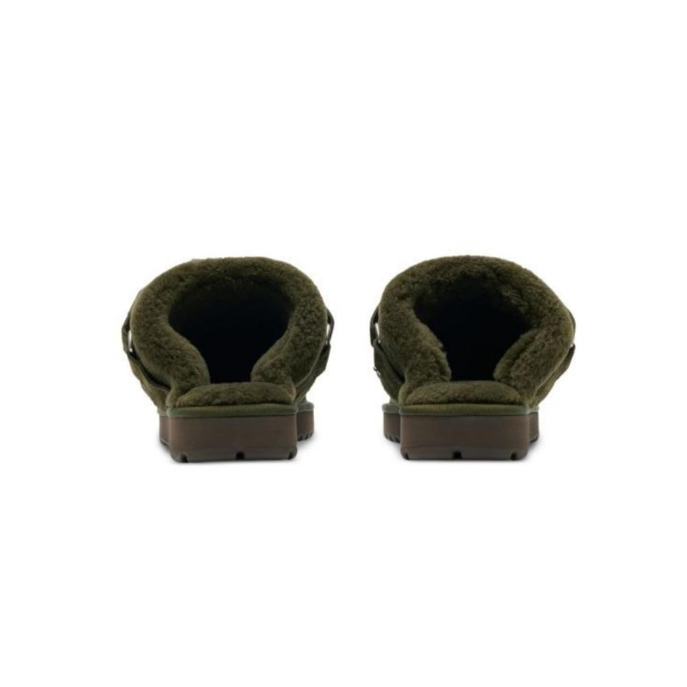 These exceptional slippers are meticulously crafted from premium shearling and supple suede, offering an incredibly soft and insulating finish for ultimate comfort. The design is centered around a cozy, tactile aesthetic, featuring a plush sheepskin lining that serves as a hallmark of the brand’s commitment to high-end luxury loungewear. Expertly tailored with a robust silhouette and adjustable wrap-around straps, these slippers reflect a perfect fusion of rustic charm and contemporary sartorial precision. The deep olive green palette provides a grounded and versatile foundation, complemented by antiqued silver-toned buckles for a definitive hardware statement. The design is finished with a durable tonal sole and signature logo-embossed insoles, embodying the pinnacle of artisanal quality and modern luxury leisure.