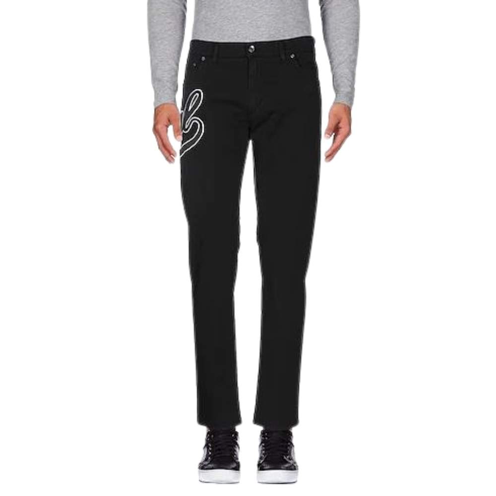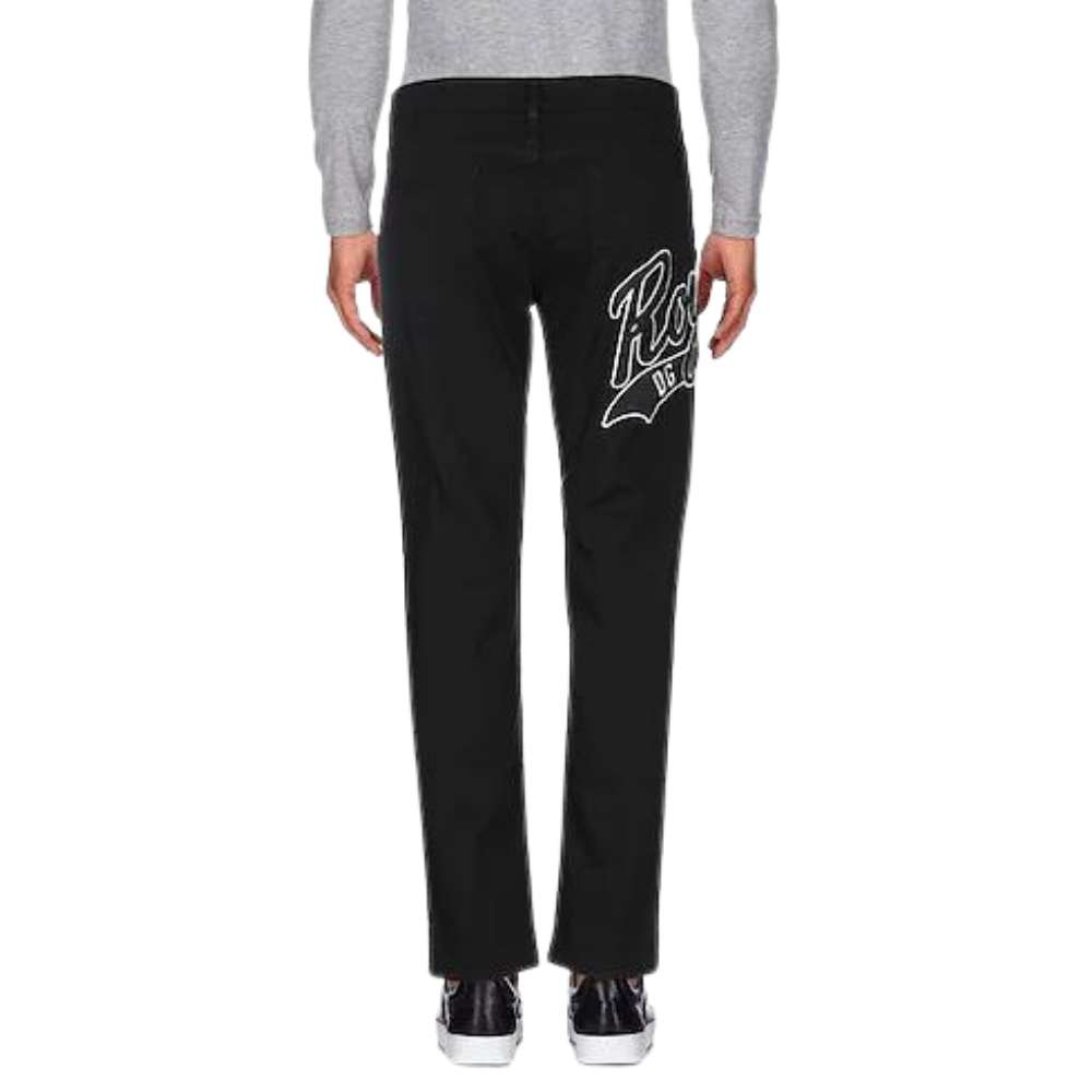 Dolce & Gabbana Logo Outline Slim Jeans – Premium black stretch denim featuring an iconic oversized white “DG” logo outline on the thigh and a modern slim silhouette.