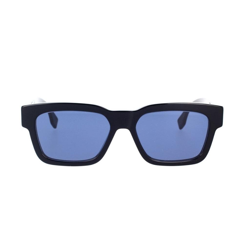 Fendi Acetate O’Lock Sunglasses – A bold luxury accessory featuring a rectangular black frame, blue lenses, and the iconic gold-tone O’Lock monogram.
