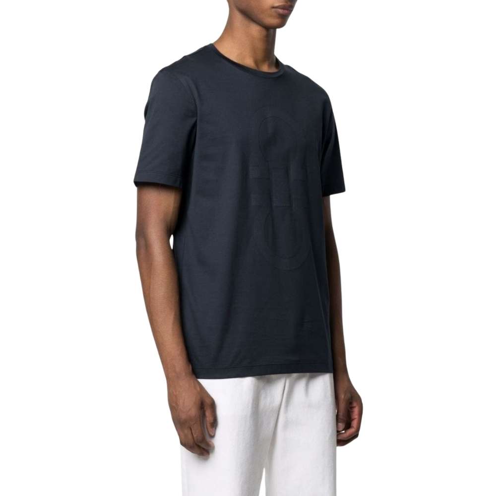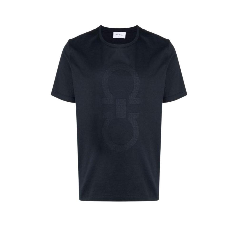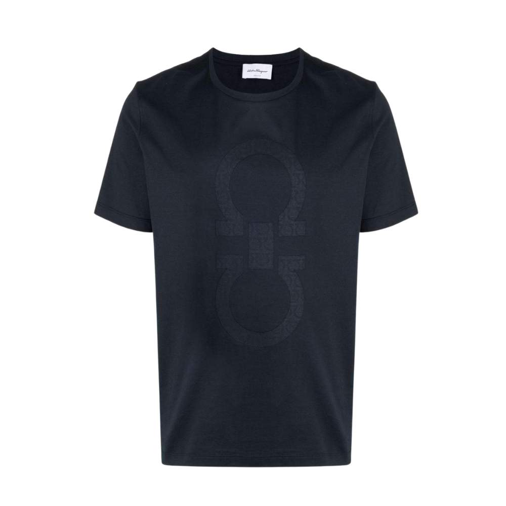 Ferragamo Gancini Monogram T-Shirt – A sophisticated black luxury essential featuring a premium cotton base and a large tonal Gancini house emblem.