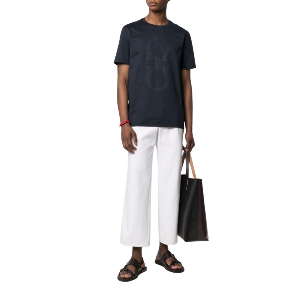 This t-shirt is crafted from premium soft-touch cotton jersey providing a high-quality feel and exceptional breathability for elevated daily wear. It features a large tonal Gancini monogram printed on the chest offering a sophisticated and understated take on the house’s iconic heritage. The design is tailored with a traditional ribbed crew neckline and a relaxed silhouette to ensure a contemporary and versatile luxury streetwear look. Expertly manufactured in Italy this piece reflects the brand’s dedication to refined visual storytelling and unparalleled luxury craftsmanship. It offers a sleek and modern aesthetic that pairs effortlessly with premium denim or tailored joggers for a sophisticated off-duty designer ensemble.