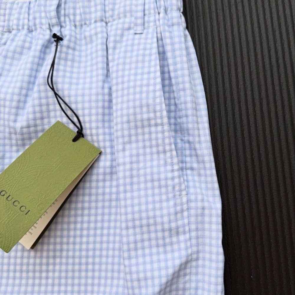 These Gucci shorts offer a refined, tailored approach to casualwear, defined by their clean straight-leg cut. Crafted from high-quality cotton or cotton blend fabric, the primary detail is the meticulous embroidery, often featuring subtle House symbols like the bee, star, or GG emblem, placed near the hem or pocket. They feature a structured waistband and fly closure, positioning them as a smart, elevated option for warm weather.