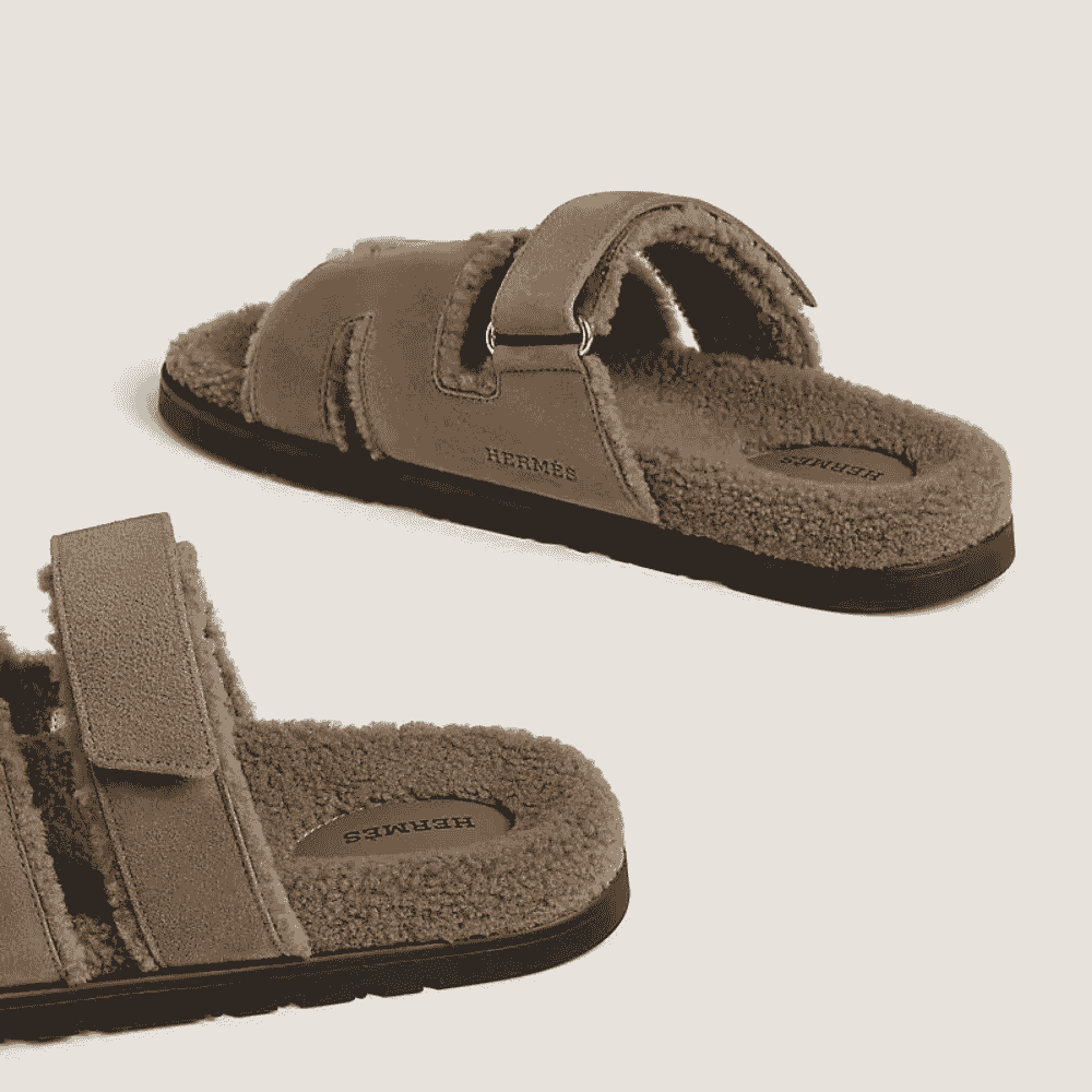 These iconic sandals are crafted from premium suede goatskin providing a velvet-soft texture and a durable finish for discerning tastes. They feature a plush shearling lining and insole which serves as a prestigious hallmark of comfort-driven luxury for year-round wear. The design is tailored with the signature “H” cut-out strap and an adjustable velcro top strap to ensure a secure, personalized fit. Expertly manufactured in Italy, this piece captures the refined Parisian elegance and unparalleled luxury craftsmanship synonymous with Hermès. The sandal is built on a contoured rubber anatomic sole providing superior arch support and a lightweight feel for all-day exploration. Available in a sophisticated earthy palette, the tonal shearling trim adds a tactile dimension that balances rugged utility with high fashion. Every pair reflects the house’s commitment to longevity, utilizing hand-finished edges and high-tensile stitching to ensure it ages gracefully.