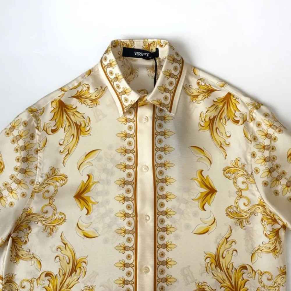 Versace Barocco Print Silk Shirt – Italian-made silk shirt showcasing the signature Barocco print in a polished tailored silhouette.