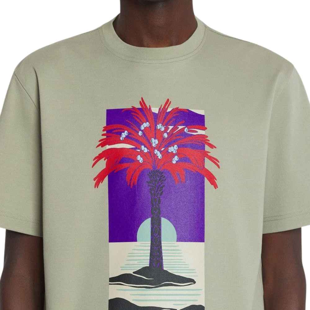 Lanvin Palm Tree Graphic T-Shirt – A contemporary luxury essential featuring a serene sage green cotton base, a retro-inspired tropical graphic, and a modern oversized fit.