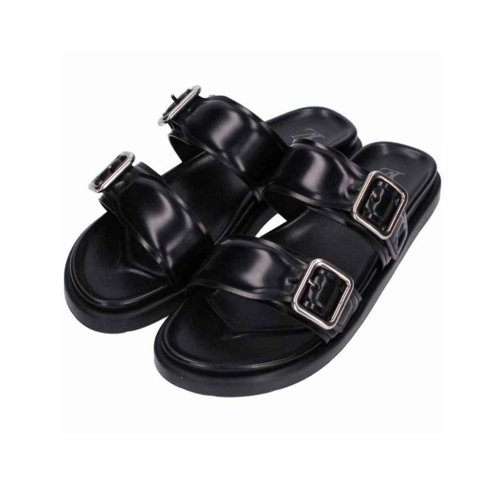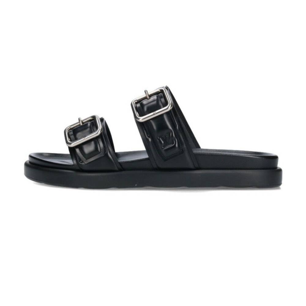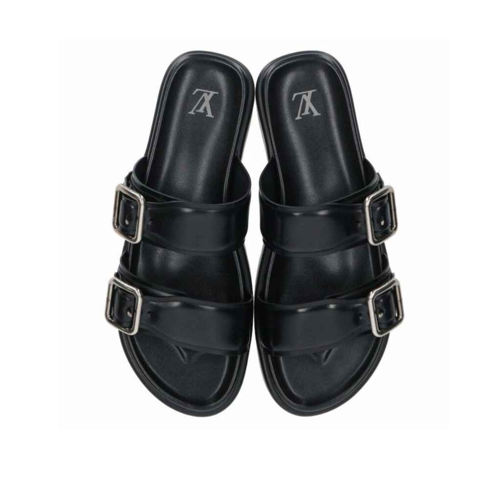 The Louis Vuitton LV Venice Mule is a refined slip-on shoe that emphasizes comfort and subtle luxury branding. Crafted from fine materials like suede or monogram canvas, this mule features a soft silhouette and a flat sole. Its defining element is the elegant, often tonal, LV initials logo hardware or signature pattern placed prominently on the upper, making it an effortlessly chic accessory for warm weather.