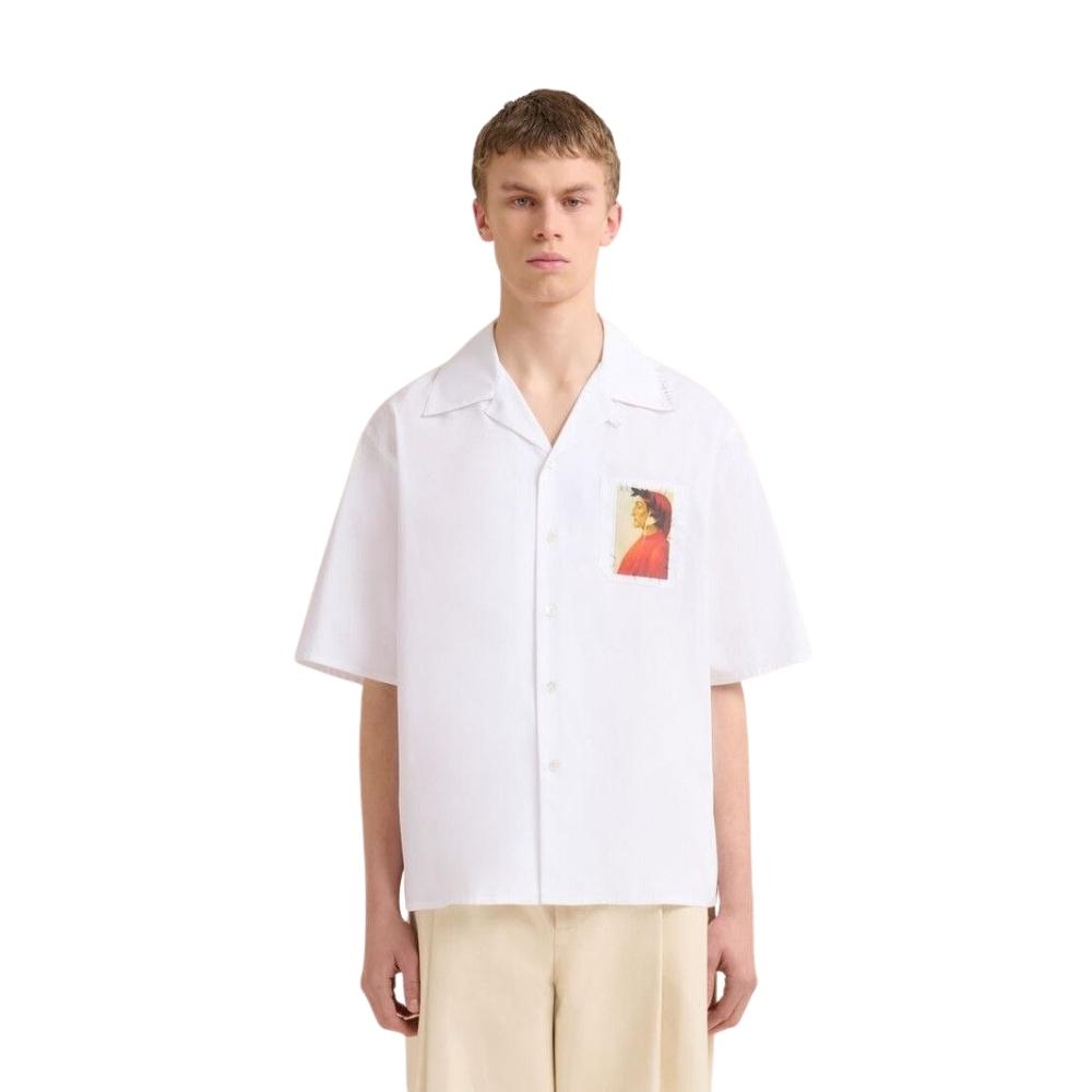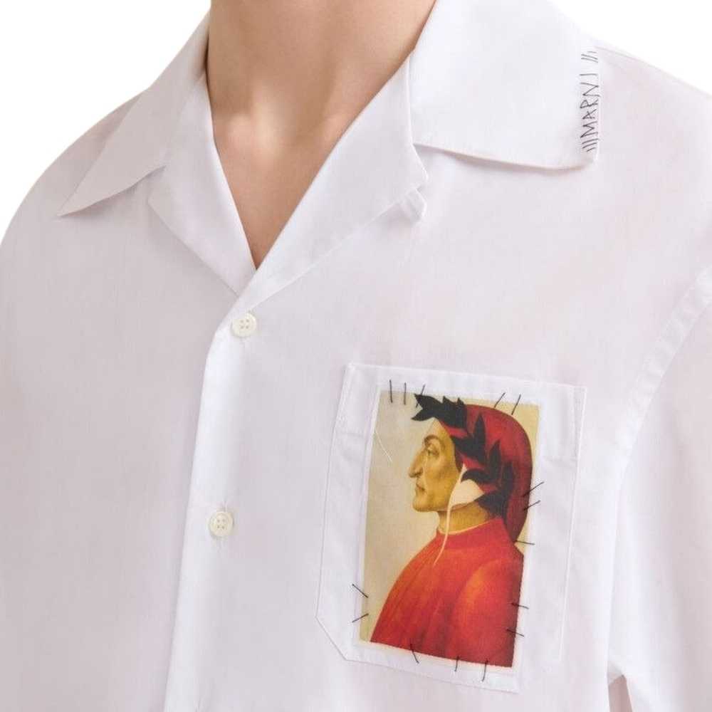 Marni Dante Alighieri Portrait Shirt – A premium white cotton poplin essential featuring an iconic historical portrait patch and signature artisanal contrast stitching.