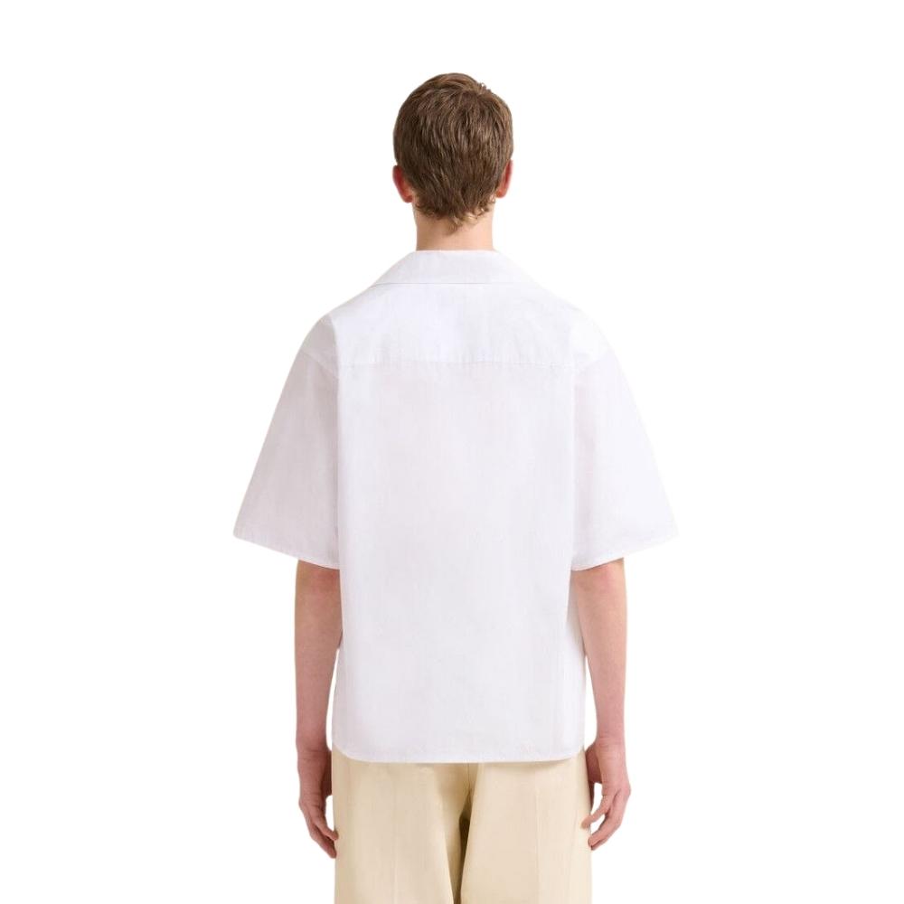 Tailored with a relaxed, modern fit and a sophisticated camp collar, this shirt reflects Marni’s commitment to playful proportions and intellectual design. Its clean white backdrop provides a stark, gallery-like foundation, complemented by subtle “MARNI” script embroidery on the collar edge for a refined hallmark of luxury. The design is finished with tonal buttons and a straight hem, embodying the perfect fusion of historical iconography and contemporary Milanese fashion.