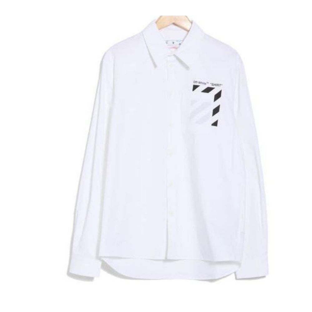 Off-White Men’s White and Black Graphic Shirt – A bold and iconic luxury staple featuring striking contrast graphics and a modern oversized silhouette.