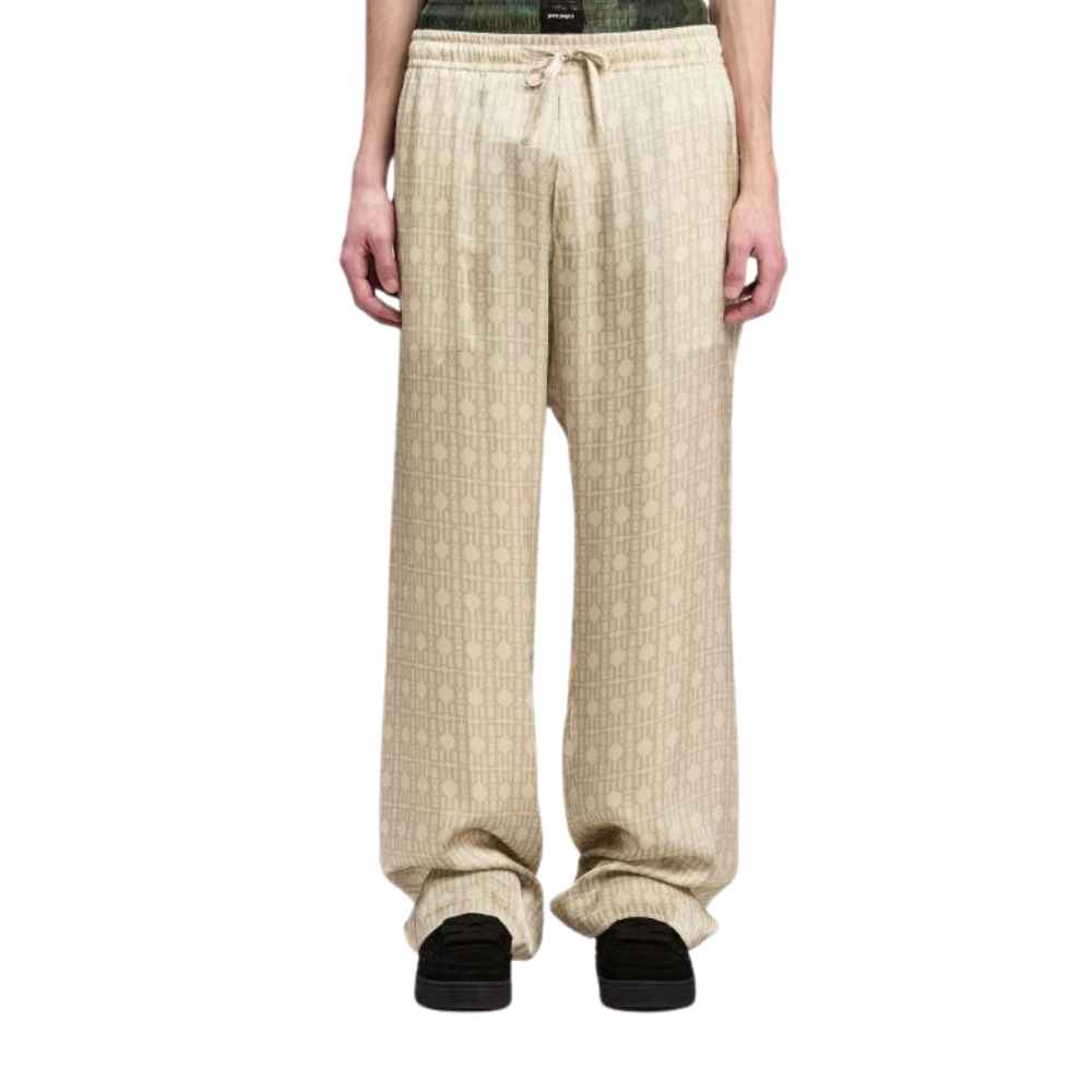 Palm Angels Monogram Jacquard Wide Leg Trousers – Italian-made monogram jacquard trousers with wide-leg silhouette and refined streetwear inspirations.