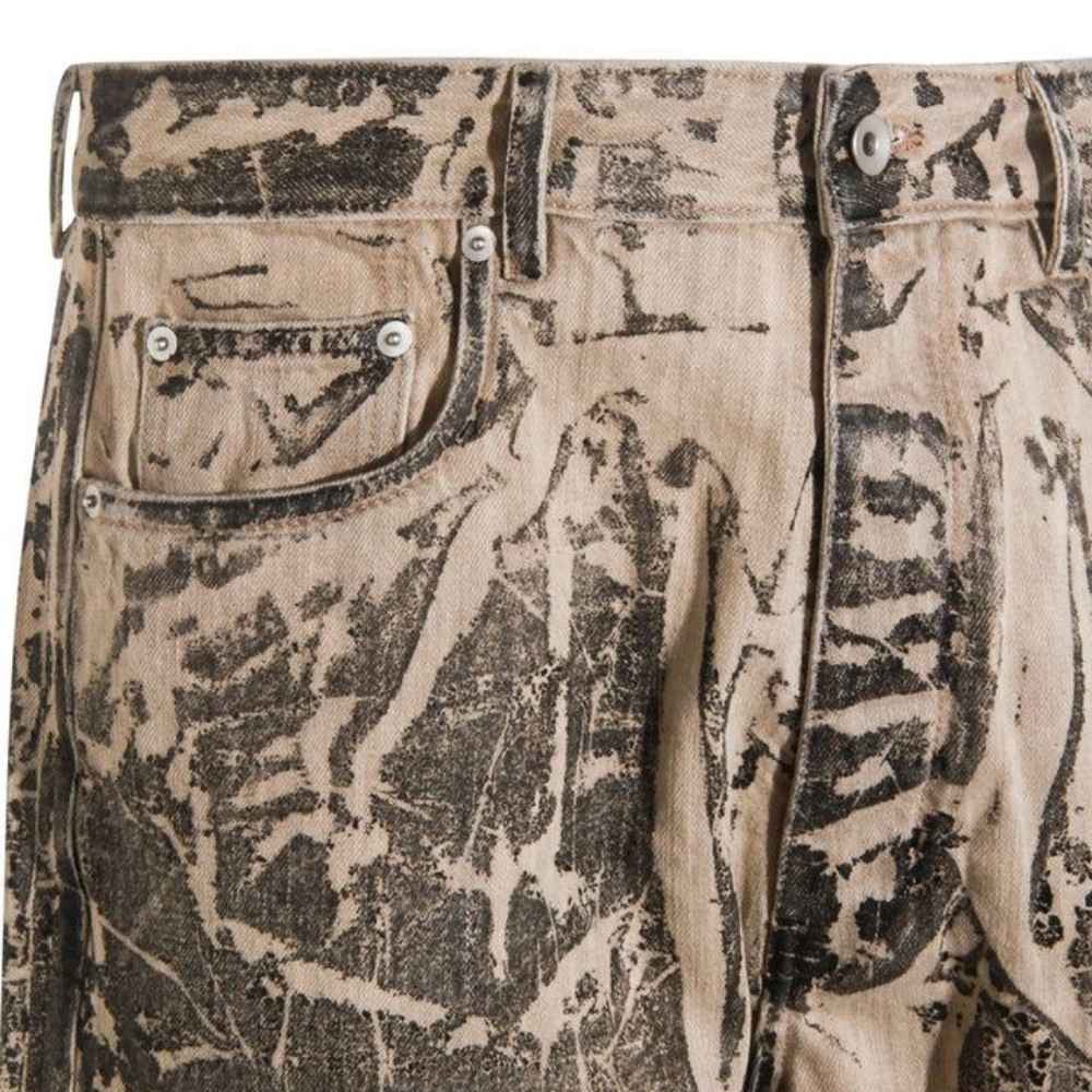 Rick Owens Crinkled Washed Denim Jeans – A statement luxury piece featuring an experimental marbled wash, straight-leg tailoring, and premium denim.