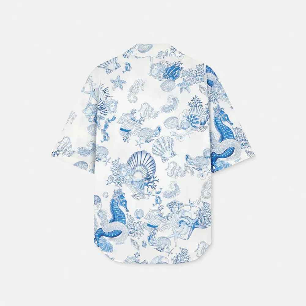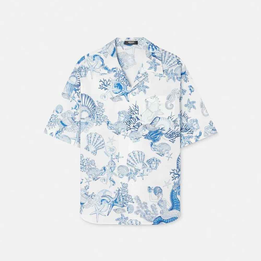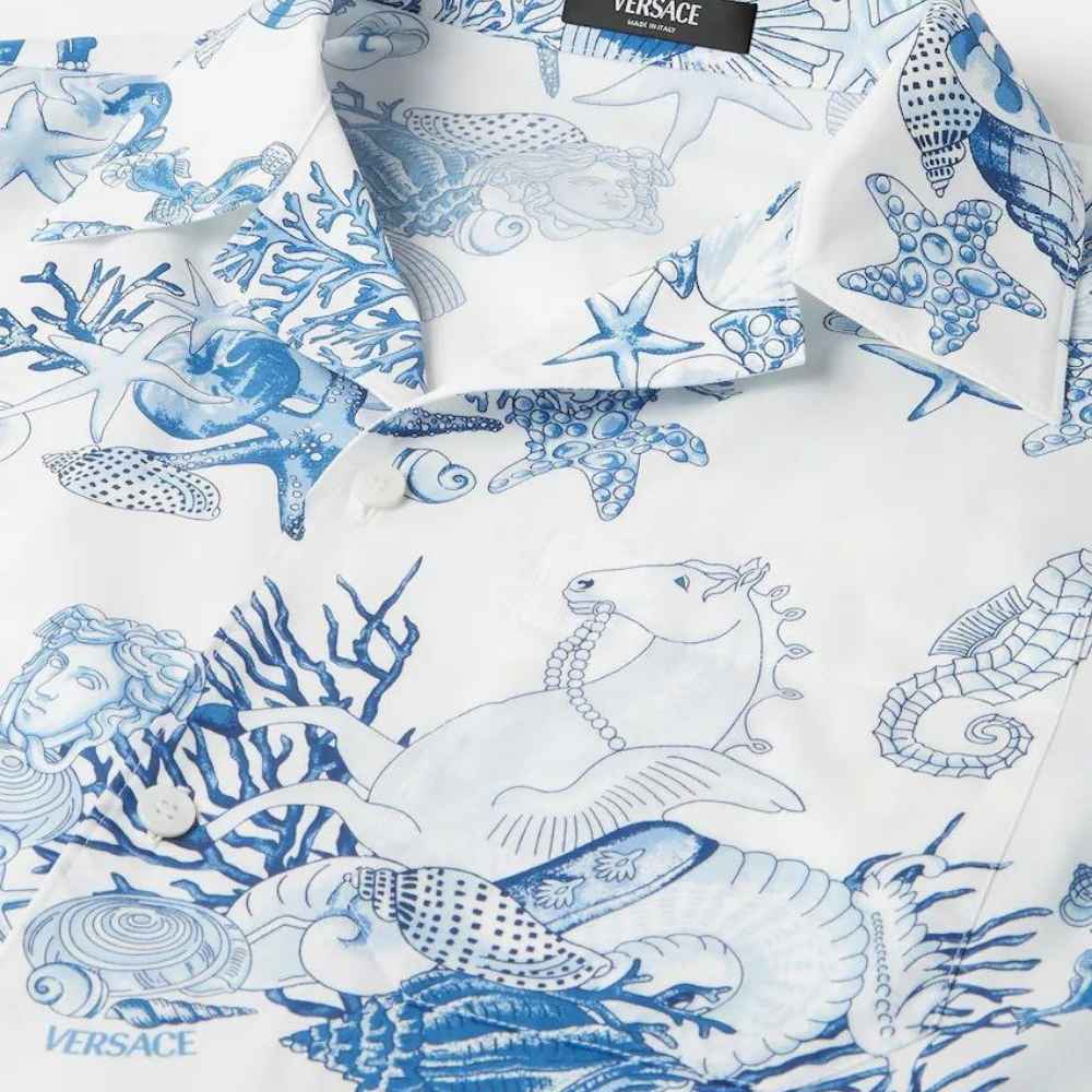 Versace Coral Theatre Shirt White & Blue – Italian-made cotton shirt featuring the iconic Coral Theatre print in a polished tailored finish.